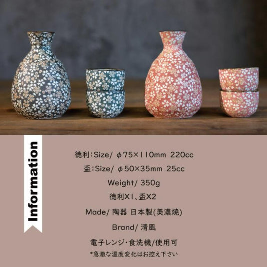 Mino Ware Sake Set (Sake Carafe X 1, Sake Cup X 2) In A Box Flower Scatter / Sake Bottle/sake Cup 1